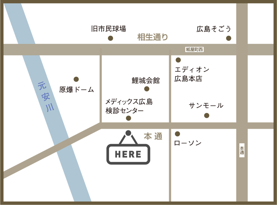 ※ 広島本通駅より約200m、徒歩約90秒※ そごう広島店より約250m、徒歩約3分※ 原爆ドームより約100m、徒歩約3分